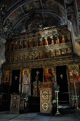- porțile împărătești cu icoana Bunei-Vestiri și cei patru Evangheliști (în mijloc); pe ușile împărătești mai pot apărea, în locul Evangheliștilor, Sf. Vasile cel Mare și Sf. Ioan Gură de Aur, cu Liturghiile scrise.
